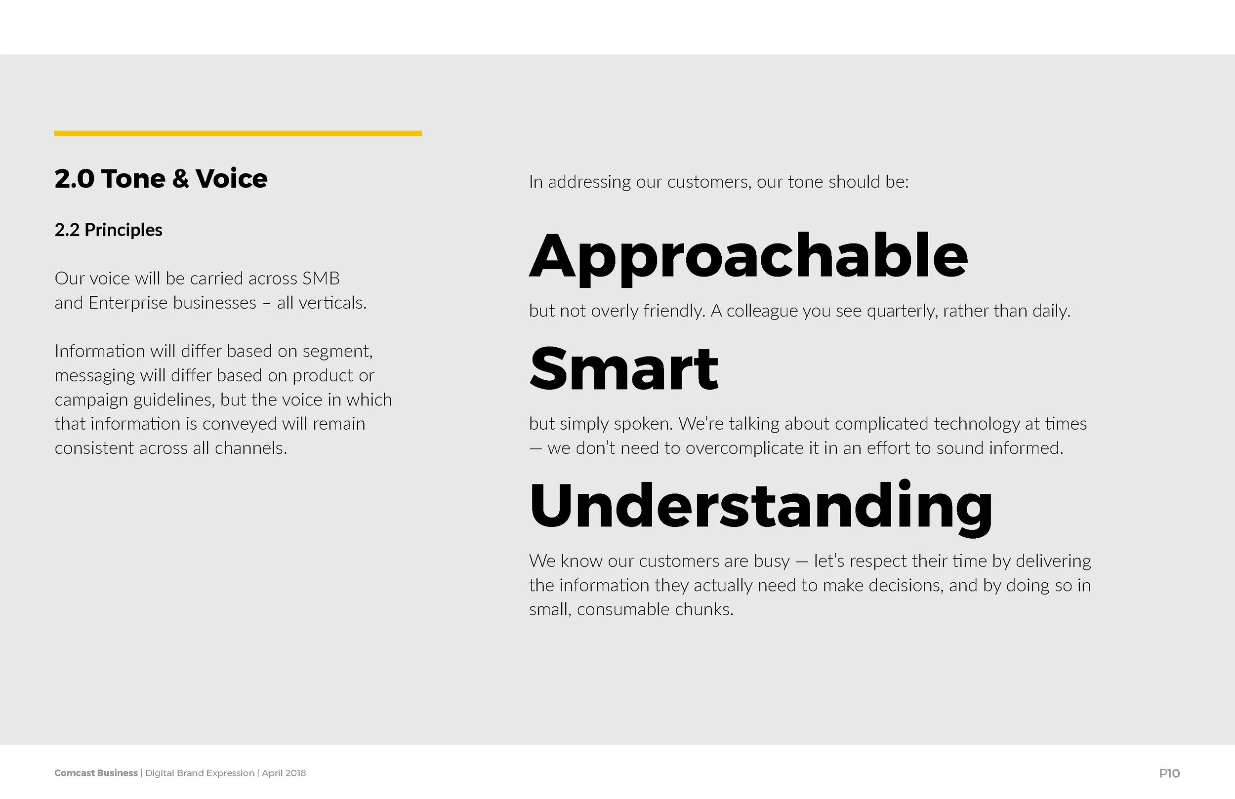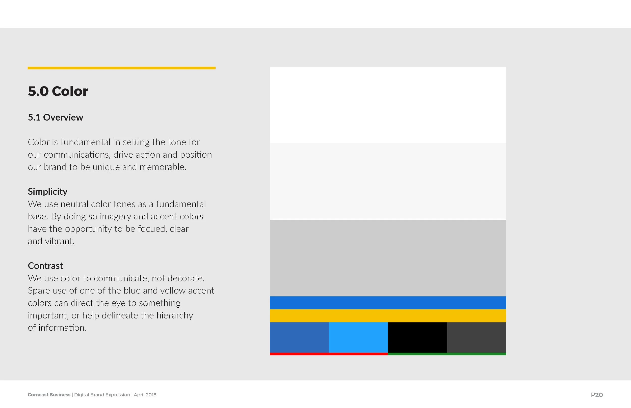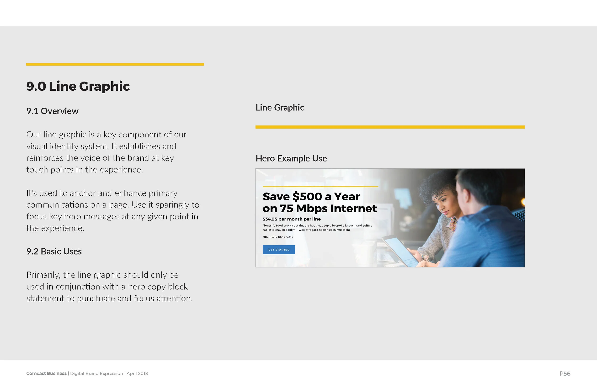 Comcast had gone through a re-brand with their consumer product line Xfinity but had dropped the ball with their business brand identity. I took the lead to re-imagine the business’s brand and developed a set of guidelines that proved to be much needed and appreciated within the business.