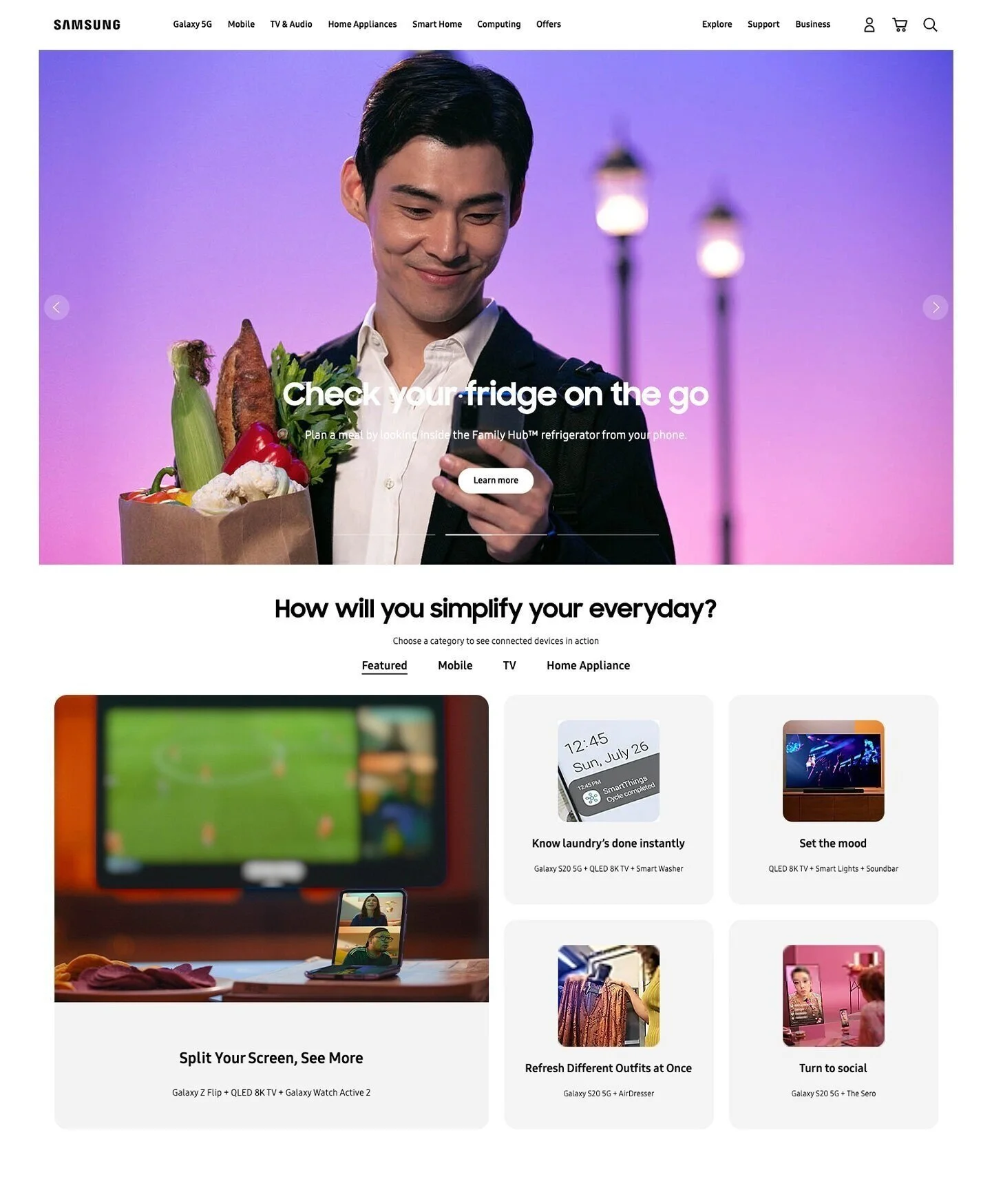 new category pages established within samsung.com