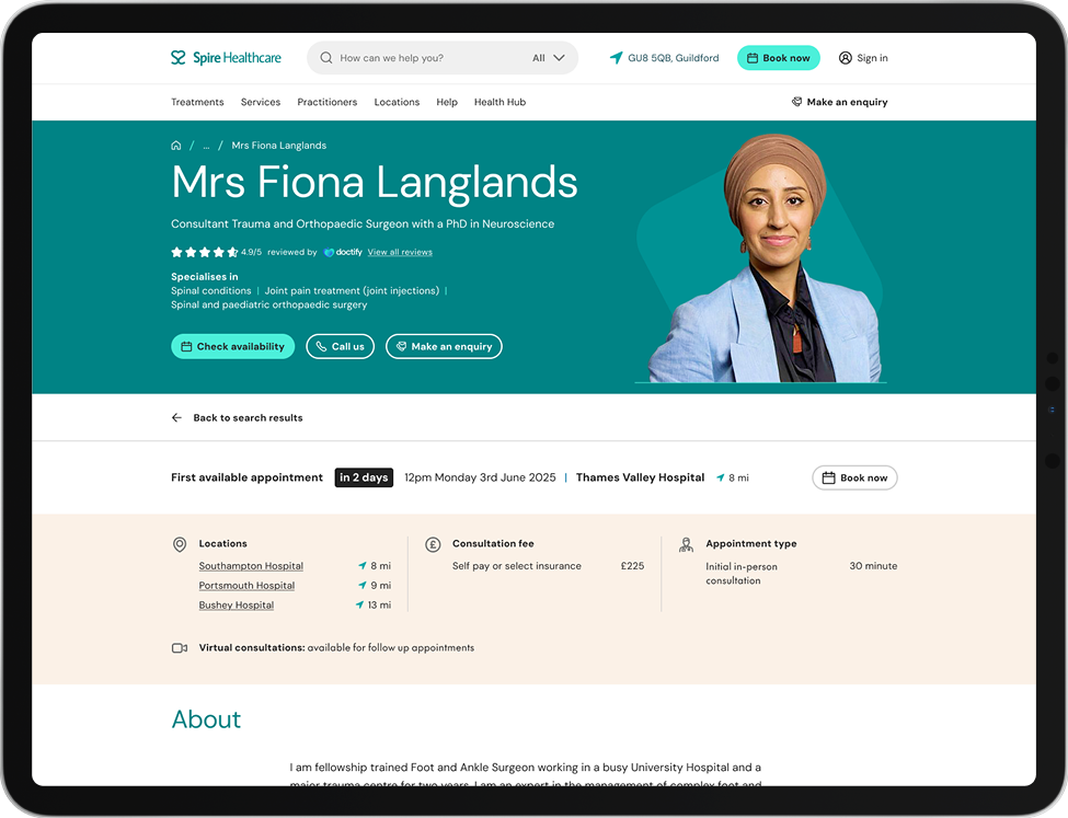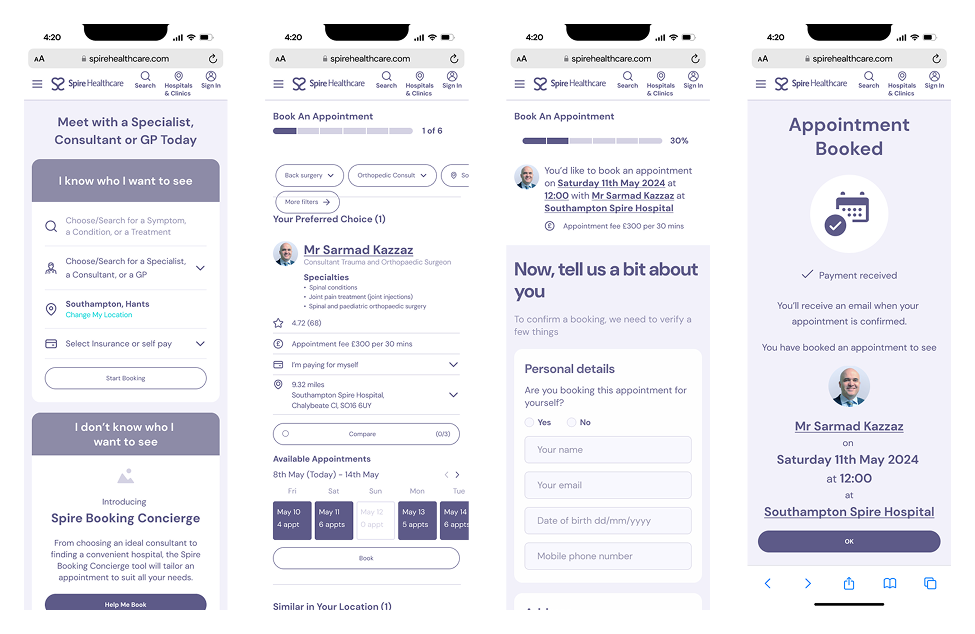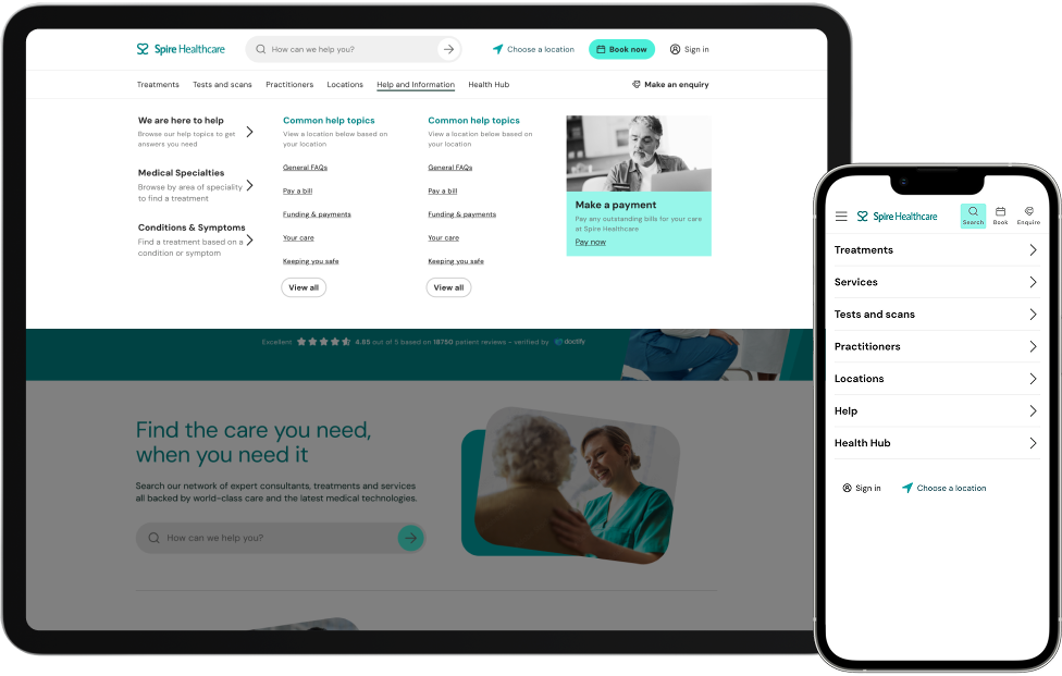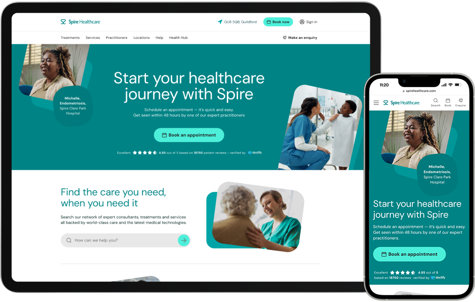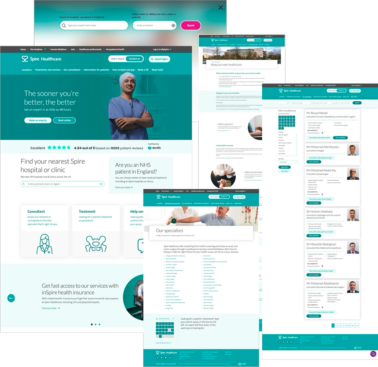 Spire’s digital platform spanned multiple hospitals, services, and specialisms, resulting in fragmented patient journeys, inconsistent information architecture, and high drop-off in online bookings.